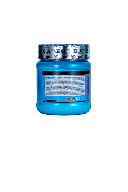 L-Glutamina, L-Leucina, L-Valina, L-Isoleucina, aroma, edulcorante (Sucralosa), colorante E-124, Clorhidrato de piridoxina (vitamina B6) y Ácido pteroilmonoglutámico (Ácido fólico).