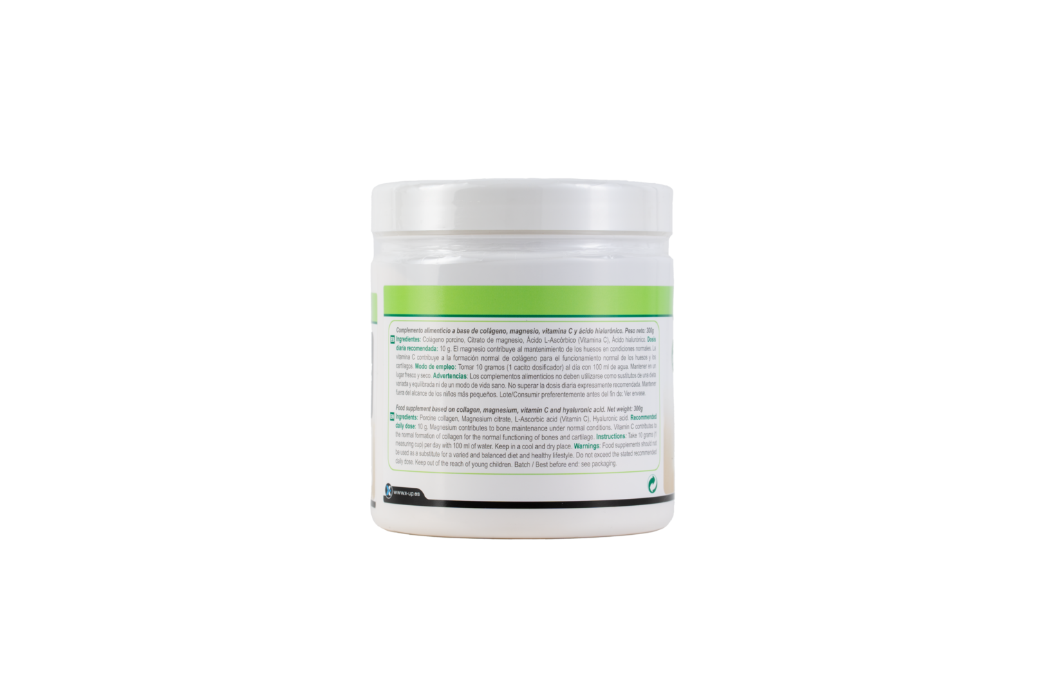 Colágeno porcino, Magnesio, Vitamina C, Ácido Hialurónico.