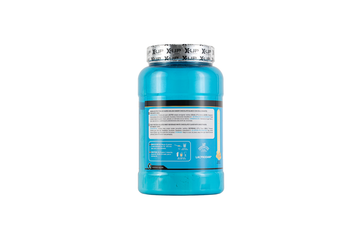 Proteína de suero de LECHE aislada [proteína de suero de LECHE aislada, emulgente: lecitina de SOJA] (97,4%), aromas, espesante: goma xantana,sal marina, edulcorantes: sucralosa y acesulfamo potásico.