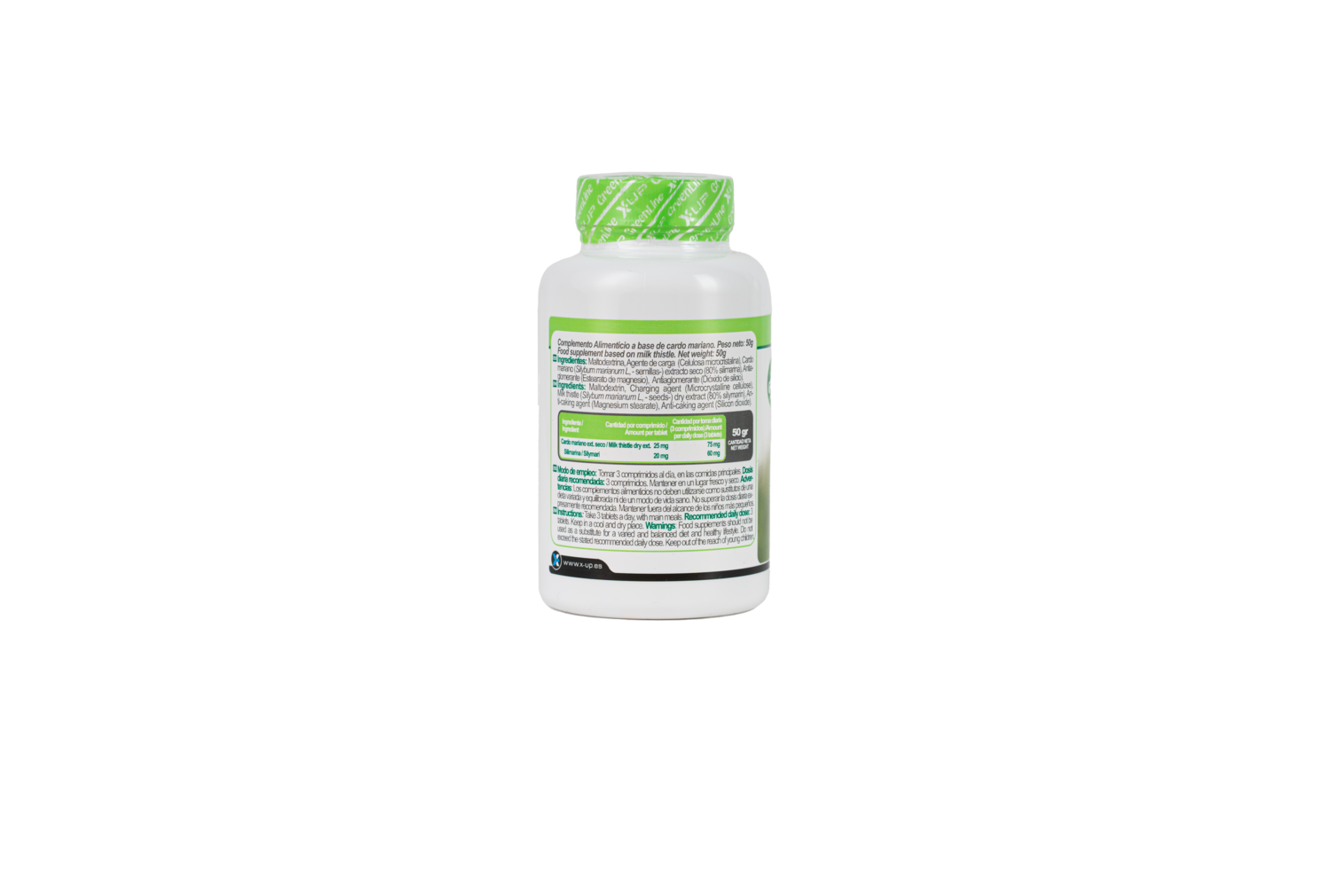 INGREDIENTES: Maltodextrina, Agente de carga (Celulosa microcristalina), Antiaglomerante (Esterato de magnesio), Cardo Mariano (Silybum marianum L, - semillas-) extracto seco (80% silimarina), Antiaglomerante ( Esterato de magnesio) Antiaglomerante (Dióxido de Sicilio).