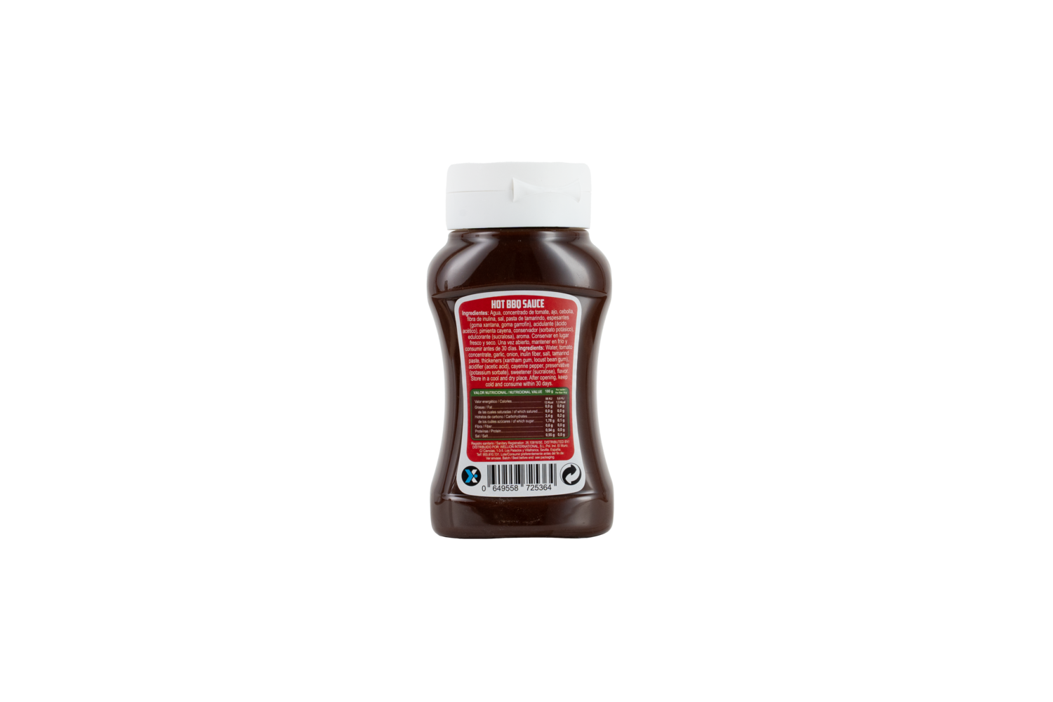 INGREDIENTES: agua, concentrado de tomate, ajo, cebolla, fibra de inulina, sal, pasta de tamarindo, espesante (goma xantana), espesante (goma garrofín), acidulante (ácido acético) pimienta cayena, conservador (sorbato potásico), edulcorante (sucralosa), aroma.